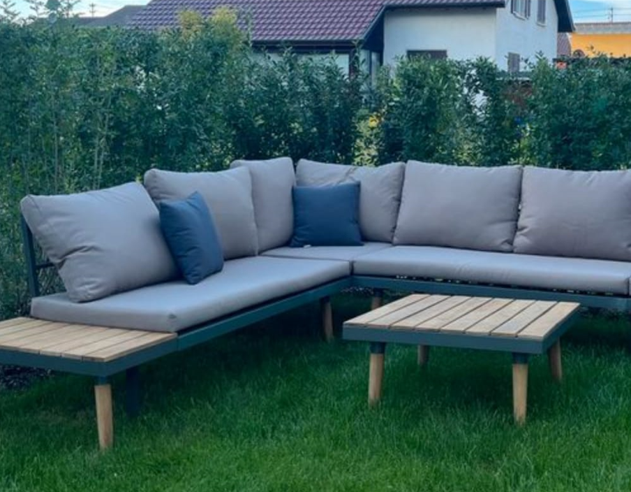 Unsere pflegeleichte und robuste Garten-Sofagarnitur besteht aus massivem Akazienholz, einem tropischen Hartholz, das witterungsbeständig und jahrelang haltbar ist. Der robuste Stahlrahmen macht das Set sehr stabil und langlebig. Des Weiteren bieten die kleinen Holzteile Platz für Snacks, Getränke, Teetassen, Bücher und andere kleine Gegenstände. Das Set wird samt besonders bequemen, dick gepolsterten Polster und Kissen geliefert, deren pflegeleichten Polyesterbezüge auch abgenommen und gewaschen werden können. Unser Garten-Möbelset muss zusammengebaut werden.