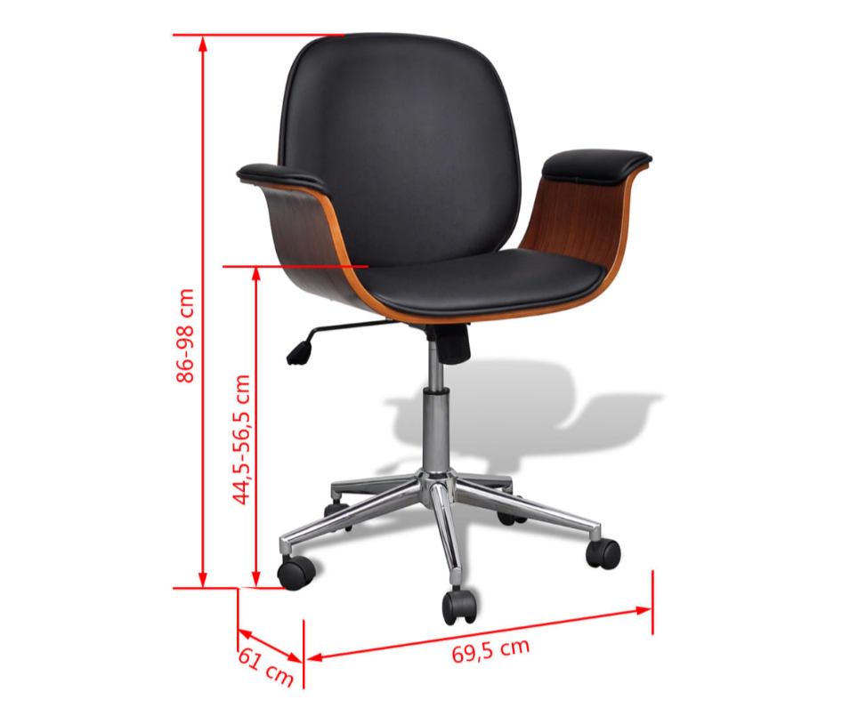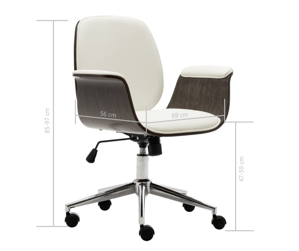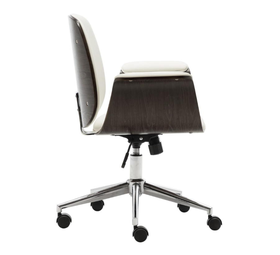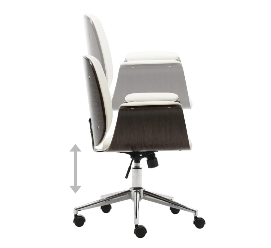 Mit seinem gepflegten und dennoch zeitlosen Design eignet sich dieser Bürostuhl perfekt für jedes Wohnzimmer, jeden Schlafsaal, jede Lounge oder jedes Büro. Für optimalen Komfort ist der Sessel mit pflegeleichtem Kunstleder gepolstert. Der gebogene Holzrahmen verleiht ihm einzigartige Schönheit und Stil. Die ausgestatteten 5 Rollen sind für ein einfaches Verschieben ausgelegt. Darüber hinaus lässt sich dieser Sessel dank des Gasliftmechanismus in der Höhe verstellen und ist eine perfekte Ergänzung für jedes Zuhause oder Büro.