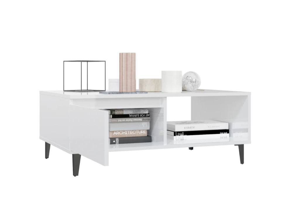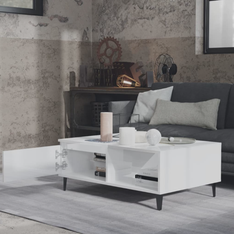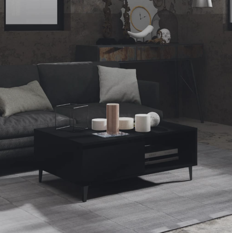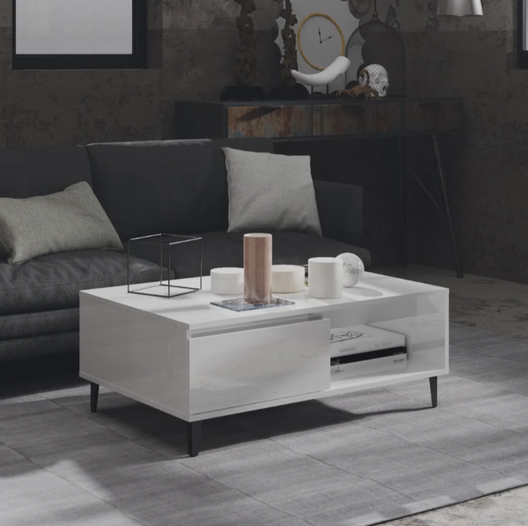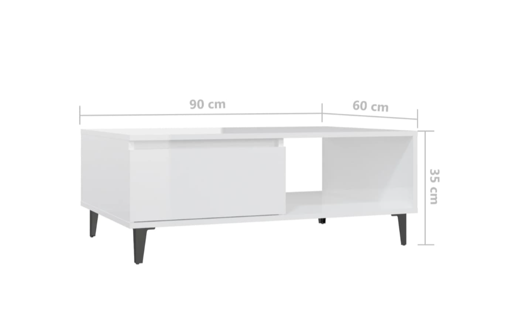 Dieser Couchtisch ist aus Holzwerkstoff gefertigt, was seine Robustheit, Haltbarkeit und Langlebigkeit gewährleistet. Die Metallbeine sorgen zusätzlich für zusätzliche Stabilität. Dieser Beistelltisch bietet viel Stauraum und die stabile Tischplatte eignet sich perfekt zum Abstellen von Getränken, Speisen und anderen Dekorationsgegenständen. Außerdem lässt sich der Wohnzimmertisch leicht mit einem feuchten Tuch reinigen.