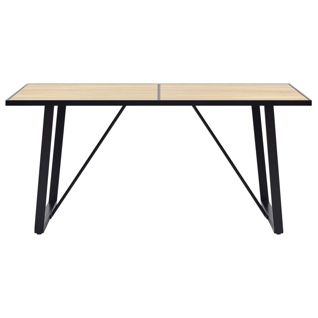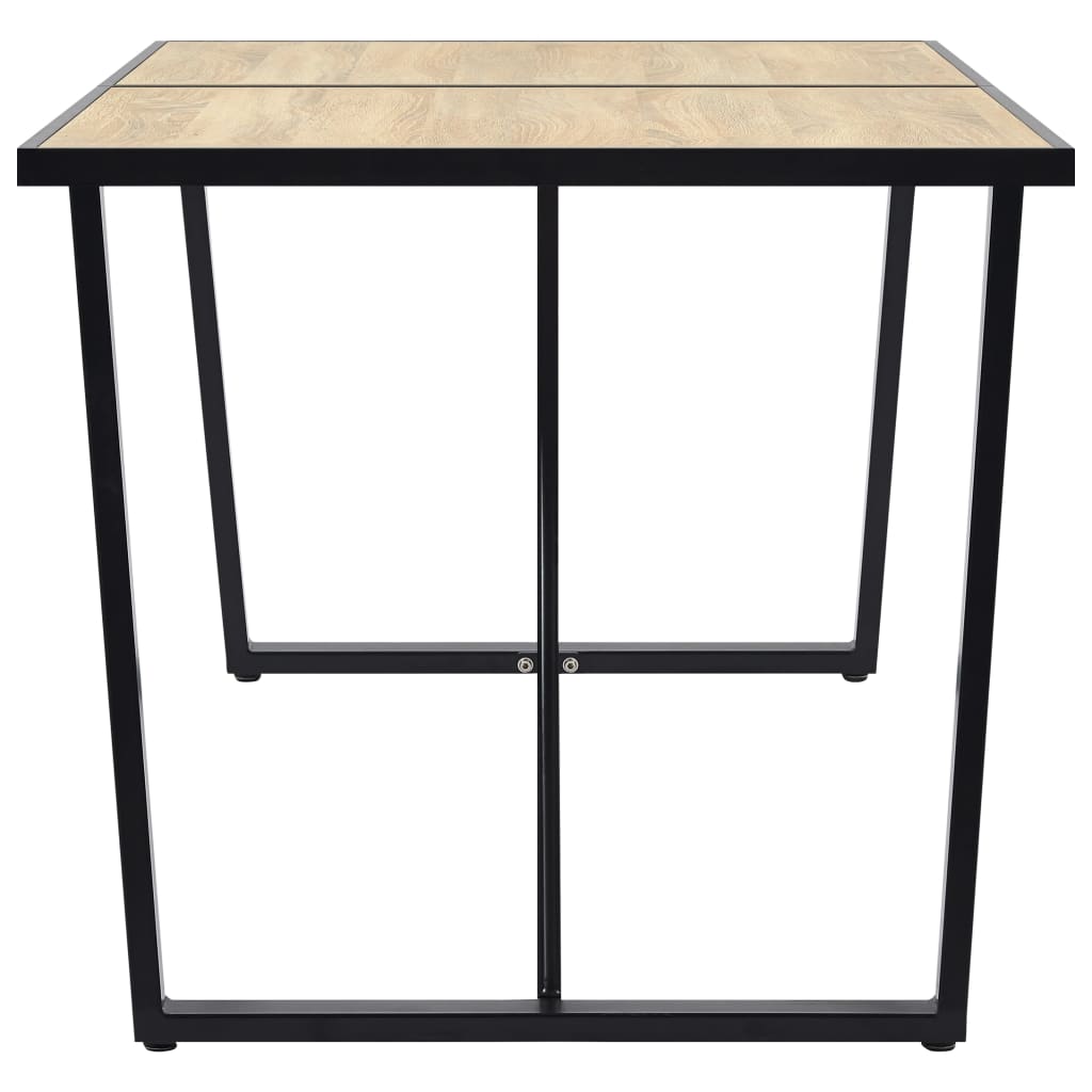 Dieser mit klaren und modernen Linien gestaltete Esstisch ist eine hervorragende Wahl für Ihre Küche, Ihr Esszimmer und andere Innenräume. Das Holzmasermuster verleiht Ihren Mahlzeiten eine unverwechselbare Eleganz. Dieser Esstisch ist mit pulverbeschichteten Stahlbeinen in U-Form ausgestattet, was ihn sehr stabil und langlebig macht. Die MDF-Tischplatte lässt sich auch sehr einfach mit einem feuchten Tuch reinigen.
