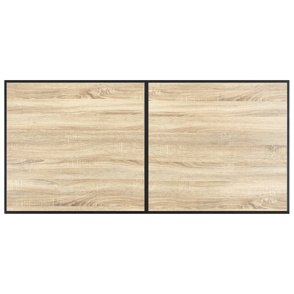 - Farbe: Eiche mit Holzmaserung (Tischplatte) + Schwarz (Rahmen)