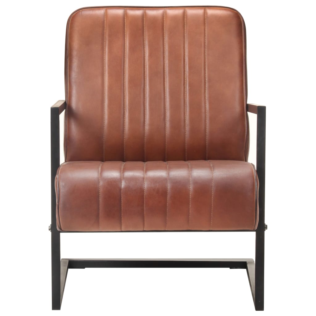 Dieser schlichte Freischwinger-Sessel im Retro-Design ist eine perfekte Kombination aus Stil und Funktionalität. Es kann der Blickfang in Ihrem bestehenden Wohnraum sein. Dieser Stuhl aus Echtleder mit braunem Finish fühlt sich weich an. Dank des dick gepolsterten Sitzes und der Rückenlehne ist dieser TV-Sessel sehr bequem und auch leicht zu reinigen. Der robuste pulverbeschichtete Eisenrahmen macht ihn außerdem stark und langlebig.