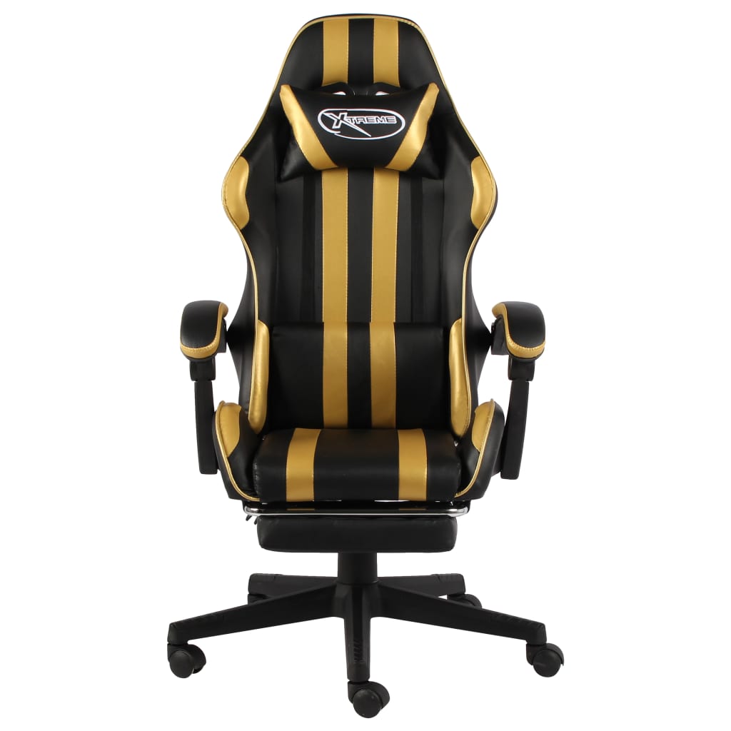 Gaming-Stuhl mit Fußstütze Schwarz und Golden Kunstleder