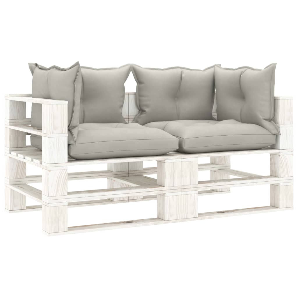 Garten-Palettensofa 2-Sitzer mit Kissen in Taupe Holz
