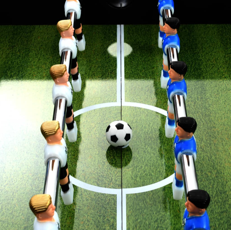 Veranstalte ein professionelles Kickerturnier bequem und in aller Ruhe bei dir zu Hause. Der Kickertisch eignet sich für Einzel- oder Gruppenspiele.