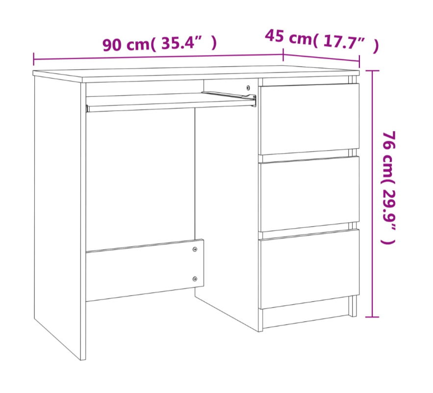 Dieser aus hochwertigem Holzwerkstoff gefertigte PC-Tisch gewährleistet Robustheit, Stabilität und eine lange Lebensdauer. Mit einer Länge von 90 cm nimmt dieser Schreibtisch wenig Platz ein, wodurch er für Jugend- und Kinderzimmer geeignet ist und sogar in Ecken eingesetzt werden kann. Das Schubladen-Design vergrößert den Stauraum, in dem Ordner, Bücher oder andere wichtige Gegenstände aufbewahrt werden können. Zusätzlich ist der Computertisch einfach zu pflegen und mit einem feuchten Tuch zu reinigen.