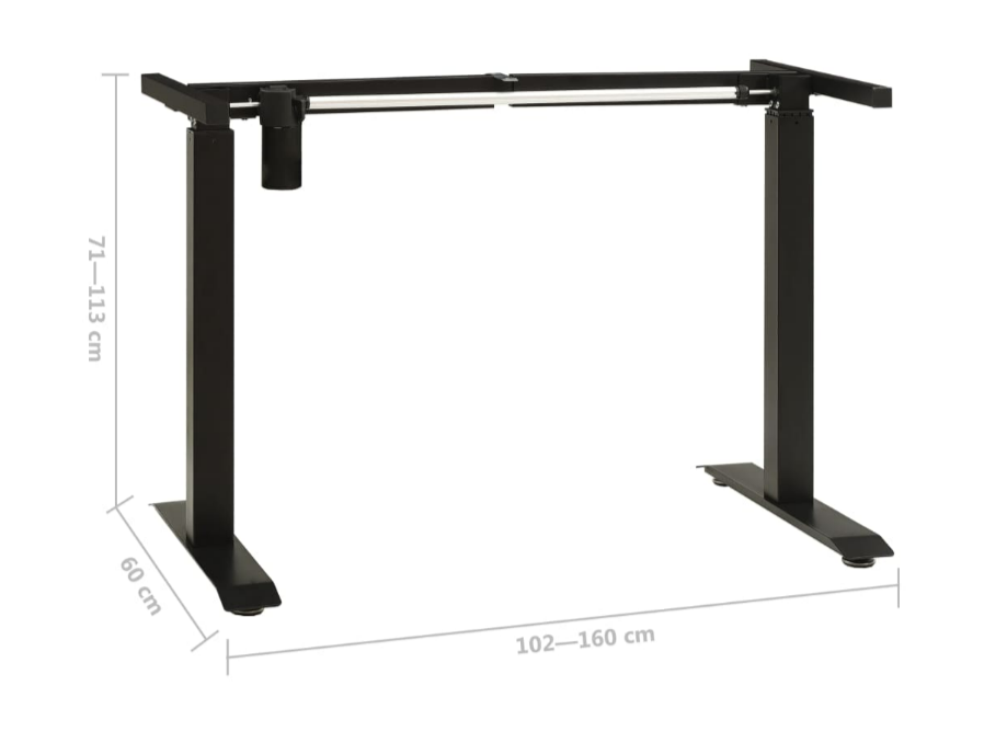Dieser Schreibtischrahmen aus pulverbeschichtetem Kohlenstoffstahl ist stabil. Es hat eine einstellbare Breite von 102-160 cm und eine Höhe von 71-113 cm, um Ihren spezifischen Anforderungen gerecht zu werden. Das Gestell verfügt über ein Bedienfeld mit Auf-/Ab-Tasten für eine schnelle und mühelose Einstellung. Es kann mit einer Tischplatte Ihrer Wahl verwendet werden, um perfekt zu Ihrem Arbeitsbereich zu passen. Dieses Gestell ist für eine Tischbreite von 120-180 cm und eine Tiefe von 60-80 cm geeignet.
