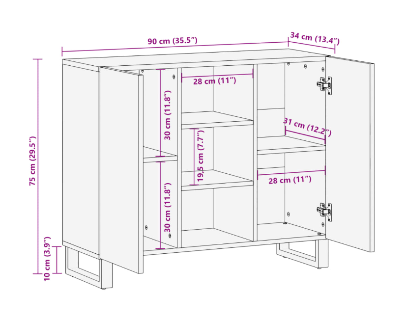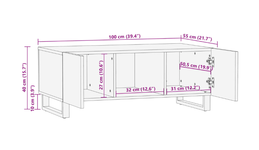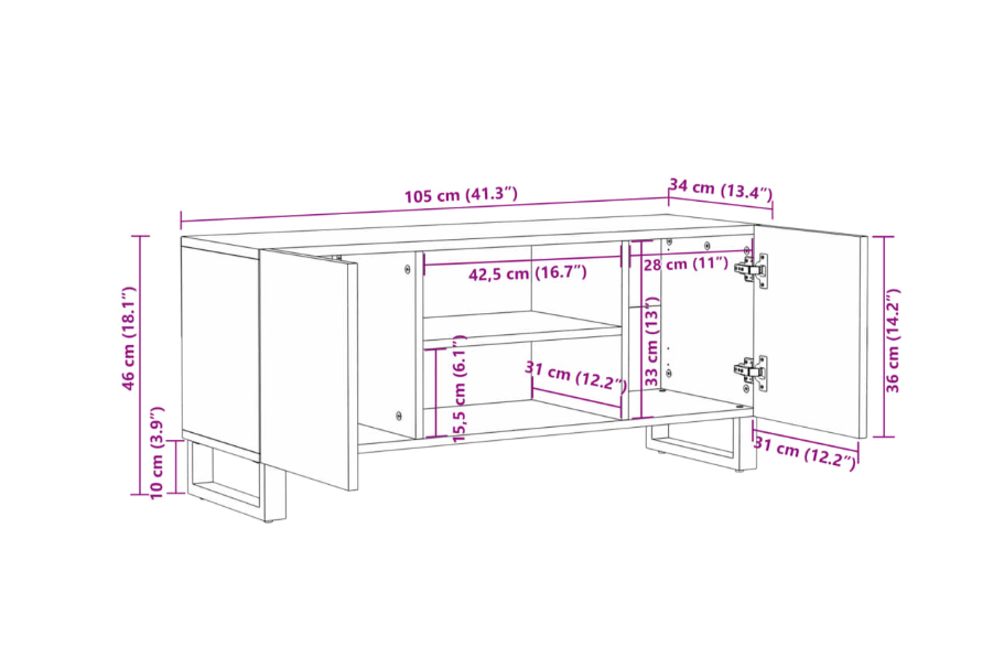 TV-Schrank Akazia: 105 x 34 x 46 cm (L x B x H)
