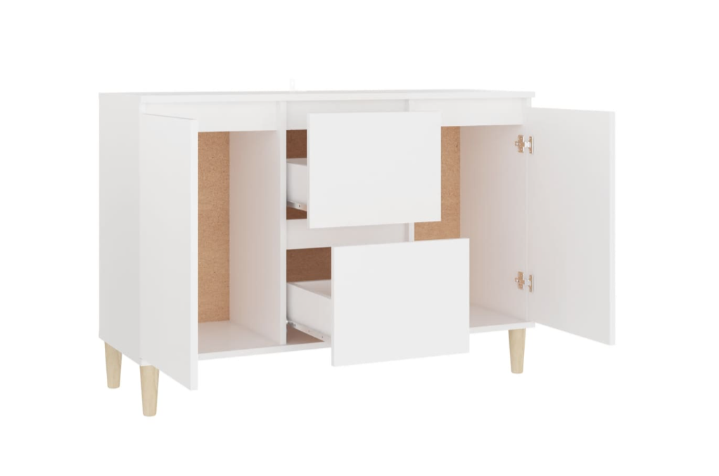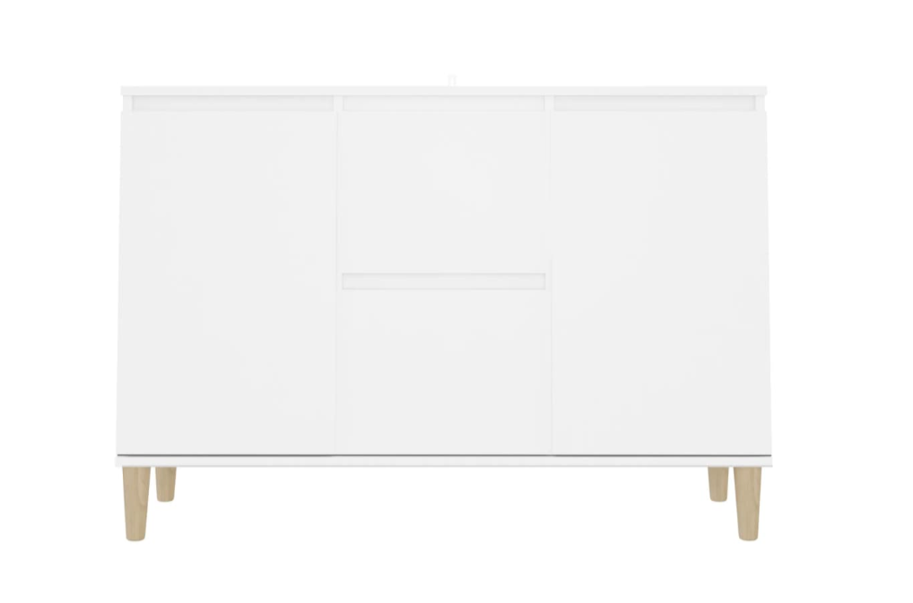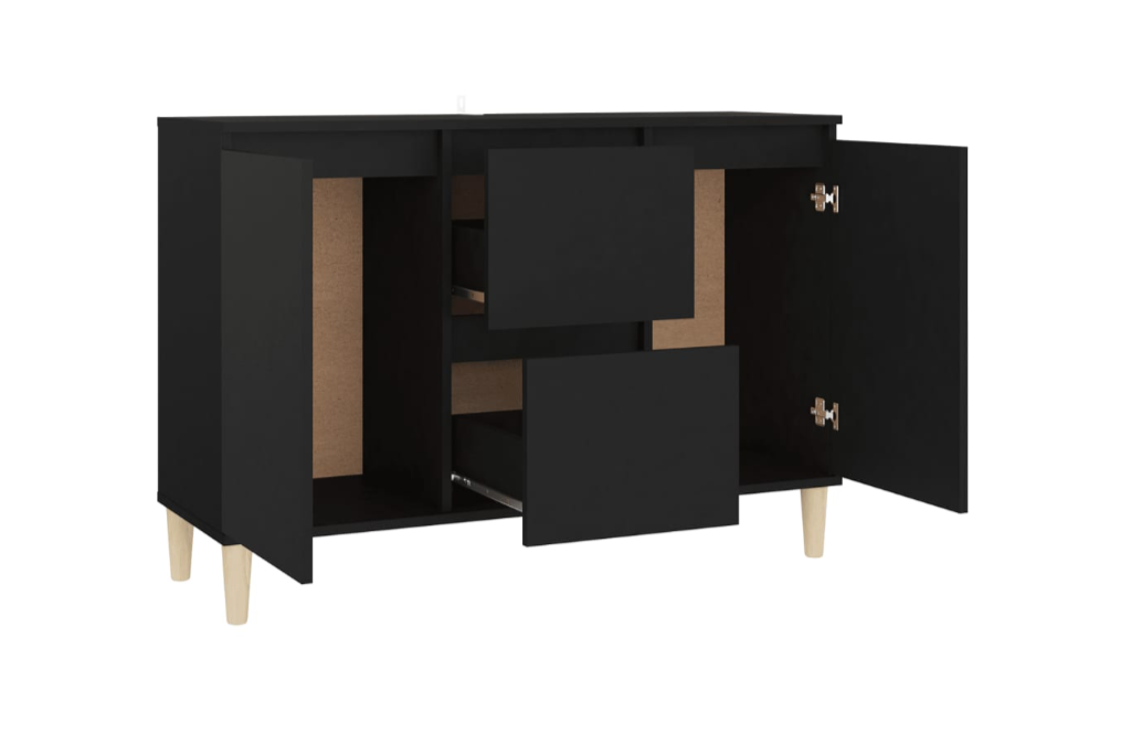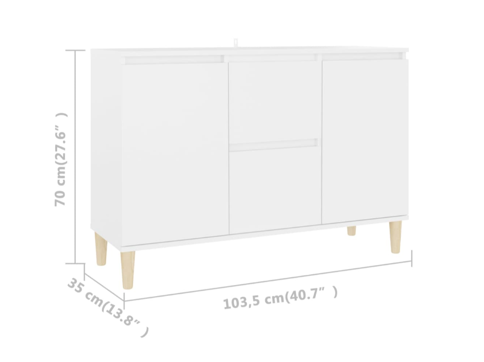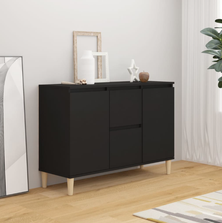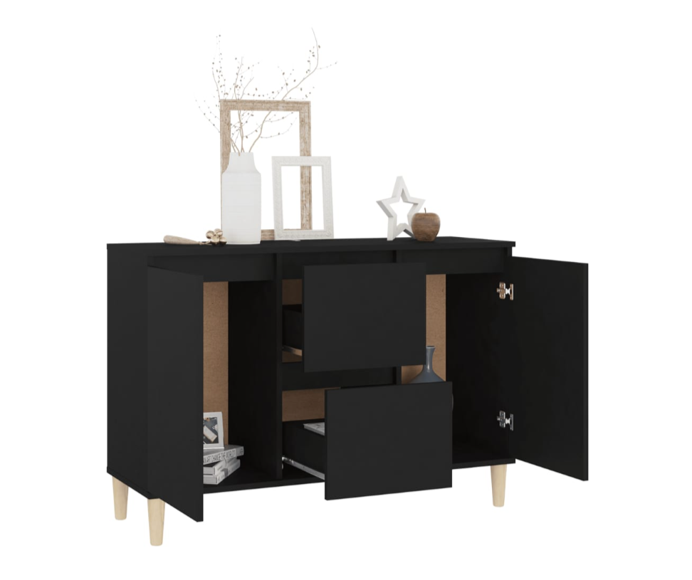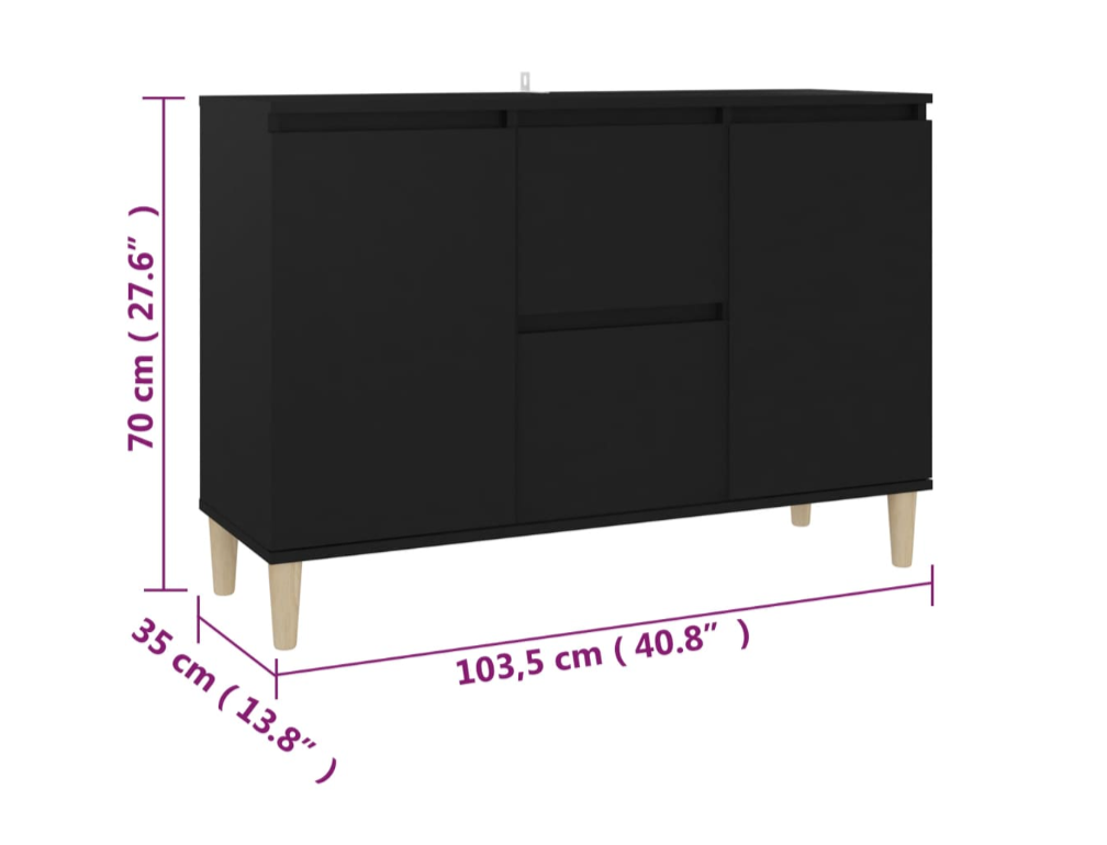 Dieses Sideboard verleiht Ihrem Wohnbereich einen Hauch von Eleganz und ein edles Erscheinungsbild. Dieser Beistellschrank ist aus Holzwerkstoff gefertigt, was seine Robustheit, Haltbarkeit und lange Lebensdauer gewährleistet. Die Holzbeine sorgen für Stabilität. Der Bücherschrank verfügt über 2 Schubladen und 2 Türen und bietet ausreichend Stauraum für Ihre Gegenstände. Auf der stabilen Tischplatte können Sie auch Dekorationsgegenstände und Fotorahmen platzieren. Darüber hinaus lässt sich der Aufbewahrungsschrank leicht mit einem feuchten Tuch reinigen.