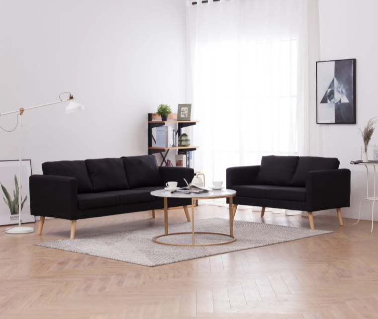 Sofa-Set "Valentino" mit Stoffbezug 2 tlg. in Schwarz oder Taupe